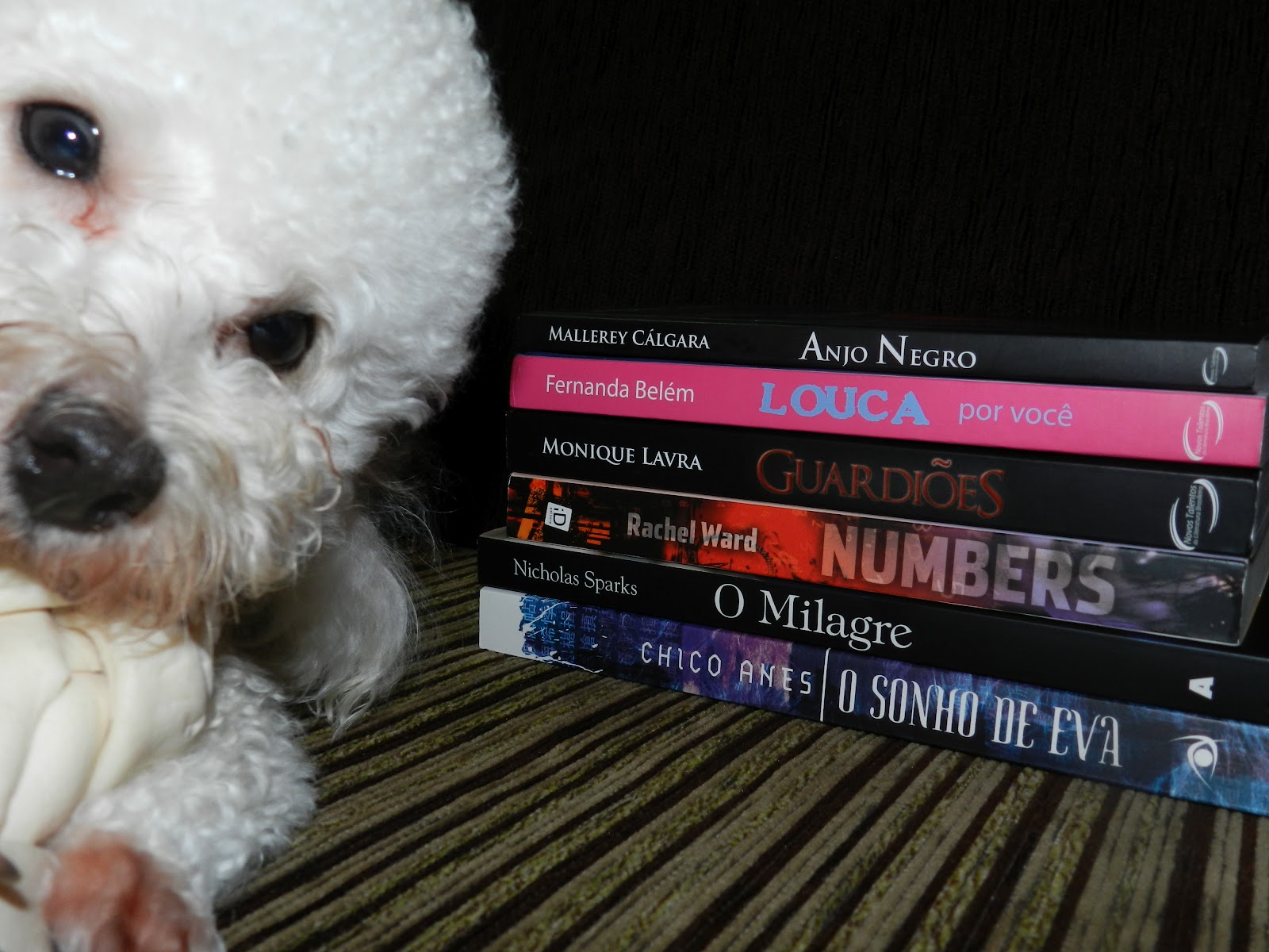 A Pandora, uma das minhas cadelinhas, resolveu dar um oi! Bem, aí estão os livros dessa semana! Os três primeiros terão resenhas em breve e os outros não tem previsão.