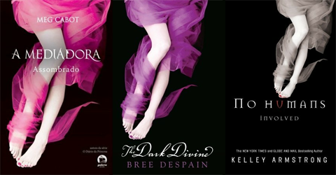 A capa mais conhecida aqui provavelmente é The Dark Divine, já que o livro foi lançado há mais tempo. A capa de Assombrado costumava ser diferente e assim que mudaram eu sempre confundia aquela imagem com a de The Dark Divine porque elas são muito parecidas. O trabalho feito em ambas as capas ficou ótimo mas a melhor foi The Dark Divine, a modelo parece um fantasma de tão branca mas eu adorei o roxo. No Humans Involved já foi lançado em 2010 mas eu quase nunca vejo esse livro por aí. Eu achei que a imagem ficou bem apagadinha e não gostei muito do roxo CINZA (errei!), acredito que a imagem ficaria muito mais bonita em azul ou verde.
