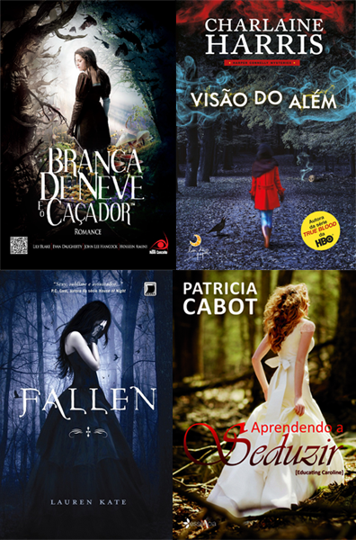 Eu gosto muito da capa de Branca de Neve e o Caçador, ela é bem realista e o contraste das cores claras e escuras ficou interessante, apesar de eu sempre me lembrar de Poison quando vejo ela. Aprendendo a Seduzir também é linda, gostei muito da mulher com aquele vestido comprido andando pela mata e fiquei curiosa, tentando imaginar como aquilo poderia acontecer no livro.