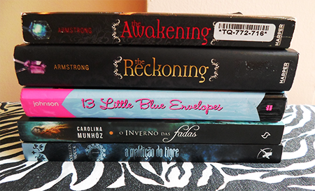 Cada livro lindinho! Os três de cima foram comprados pelo Better World Books e são em inglês, mas já foram lançados aqui no Brasil. Eu não sei o que me deu, já que eu gosto de manter as séries em um mesmo formato, mas eu comprei o primeiro livro da trilogia da Kelley Armstrong em português. Daí o segundo, que aqui se chama Despertar (Novo Século), eu comprei em paperback e o último, Confronto (Novo Século) está em hardcover! Gente, isso vai ficar lindo na minha estante. (Não, não vai)