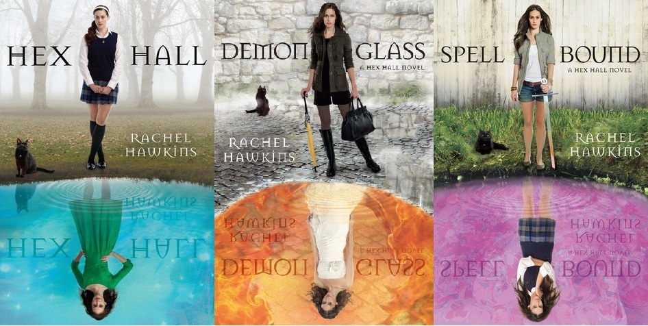 Adoro as capas de Hex Hall, a imagem diferente no reflexo é muito legal e chama a atenção, mas um dos detalhes que eu mais gosto é o que acontece se compararmos a primeira imagem e a última. Na primeira capa a modelo parece insegura e assustada, o que reflete muito bem as emoções da protagonista. Já na última imagem, com a 'conclusão' da série, ela quase parece uma garota diferente, com um ar muito mais confiante. Apesar de o uniforme ser o mesmo, até ele parece ter um novo formato com a mudança de atitude.