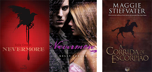 Ok, as capas de Nevermore não são tão feias, mas a versão americana ficou muito estranha com aquele cara na frente. Sendo que a trama fala um pouco sobre Edgar Allan Poe, eu entendo o corvo na versão brasileira, mas ainda assim não gostei. Antes que alguém me crucifique, eu amo a imagem de A Corrida de Escorpião, acho que combina perfeitamente com a trama. O problema é que, mais de uma vez, já ouvi meus amigos dizendo que não compraram o livro porque a capa não chamou a atenção. Pra mim, ela tinha que vir com um aviso "Melhor livro do ano, compre!" em neon.