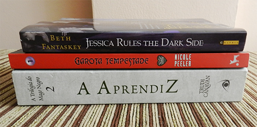 O primeiro livro chegou já faz um tempinho, mas como eu tinha ido viajar e o levei comigo, só deu para mostrar agora! A May me deu A Aprendiz (Trudi Canavan - Novo Conceito) de presente e essas 'pontinhas' azuis que vocês estão vendo ao lado do livro são tags (post-its especiais), que estão lá porque eu já terminei a leitura! Outro livro que ganhei, dessa vez em uma promoção, é Jessica Rules the Dark Side (Beth Fantaskey). É o segundo volume de uma série, sendo que o primeiro já foi publicado aqui no Brasil pela Arqueiro e se chama Como Se Livrar de um Vampiro Apaixonado. Como o li há muito tempo, terei que reler antes de poder continuar a série e isso obviamente vai demorar.