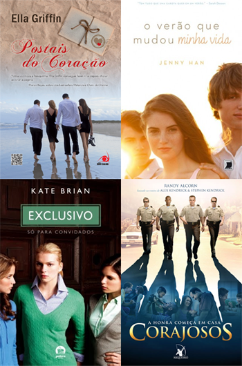A primeira capa de hoje, Postais do Coração, é bem bonita. A imagem das quatro pessoas caminhando pela praia me dá a impressão de que eles são amigos há muito tempo e a maneira como a imagem vai gradualmente mudando para areia foi genial. Não gosto nem um pouco da imagem escolhida para O Verão Que Mudou Minha Vida, porque mostra demais o rosto dos personagens e são rostos que não me agradam, além de os três terem ficado meio grudados demais para caber na imagem.