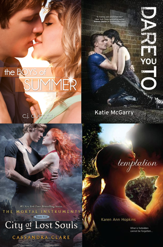 Eu olho para essa imagem de The Boys of Summer e penso "Ew". Sério, "ew". O casal escolhido não tem química nenhuma e achei expressão de ambos falsa demais, sem falar que a capa não tem nenhum detalhe que a torne mais atrativa visualmente. Minha predileta de hoje tem que ser Dare You To! Existe algo mais legal que beijo na chuva? Ficou sexy, misterioso, bonito e definitivamente chamou a atenção, sem falar nas roupas coladas.