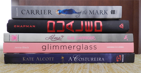 De parceria chegaram mais três livros. A Costureira (Kate Alcott - Geração), veio de surpresa e é um romance sobre uma mulher a bordo do Titanic, parece ser bem interessante mas eu nunca tinha ouvido falar nesse livro antes de ser lançado aqui. Glimmerglass (Jenna Black - Universo dos Livros) tem uns brilhos na capa que a deixaram maravilhosa, mas ainda não sei se é uma história sobre fadas, acho que só lendo para descobrir. Por fim, no fim da semana recebi Alma? (Gail Carriger - Valentina), que será meu primeiro steampunk. Vou confessar que não conheço muito sobre o tema, sei que ele existe há um bom tempo, mas começou a fazer sucesso nos livros só recentemente.