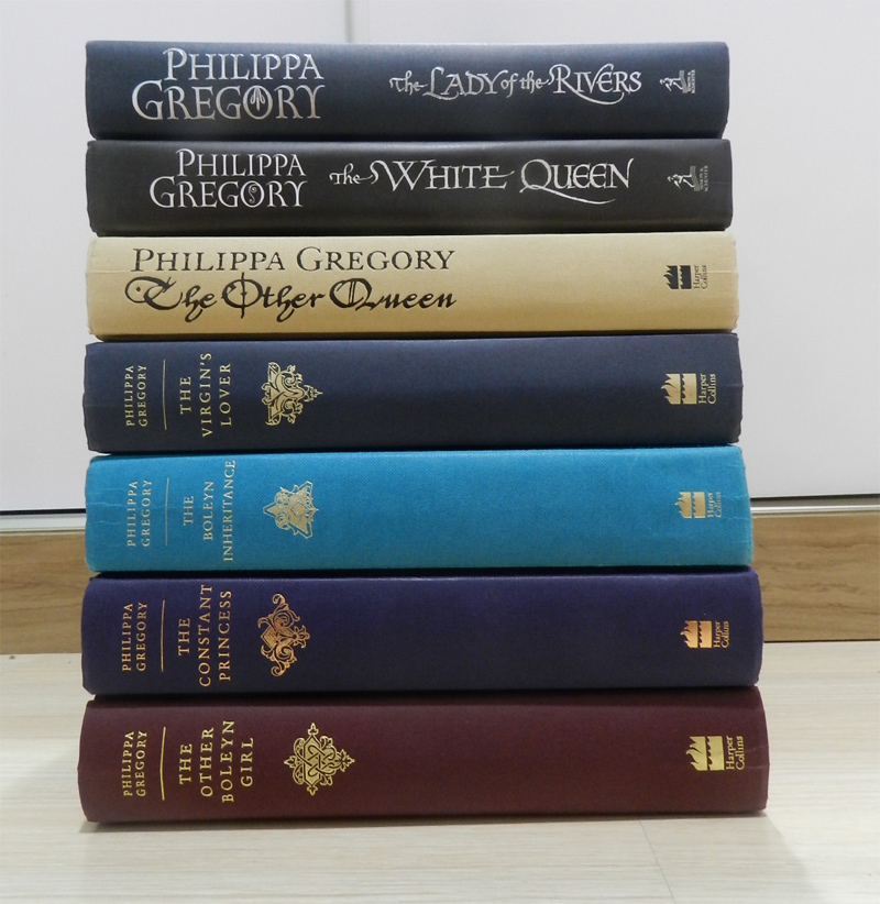 aqui. Deixarei abaixo a foto da coleção da Philippa Gregory, comprei os livros por $4 cada e são todos hardcovers, livros que no Brasil custam cerca de R$50.