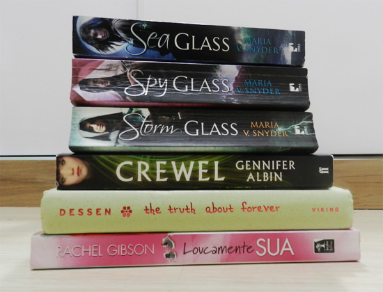 A trilogia Glass (Maria V. Snyder) é da mesma autora de Estudos Sobre Veneno, série que gostei bastante. Essa série é meio que um spin-off, ou seja, é no mesmo universo da outra série, mas foca em outros personagens. Comprei em versão pocket, porque estava querendo um livro menor pra levar dentro da bolsa. Não gosto de levar meus livros normais porque as pontas sempre amassam! Para completar, recebi Loucamente Sua (Rachel Gibson - Geração) de uma troca no Skoob! Outro livro da autora será publicado aqui em breve (talvez ainda esse mês) e quero conhecê-la!