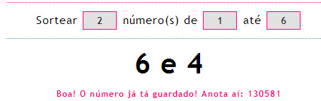 Oito pessoas haviam comentado em todas as postagens, mas daí eu me lembrei que não tinha colocado nas regras que não era necessário comentar nas promoções, então aqueles posts também estavam valendo. Nas últimas promoções desse mês, como eu lembrei, coloquei no próprio post, mas nas primeiras não. Sendo assim, as duas meninas de amarelo foram desclassificadas por não terem comentado nas promoções. Mas já coloquei nas regras desse mês que não será mais necessário, ok?As seis pessoas com os nomes em vermelho são as que estavam concorrendo e aqui está o sorteio: