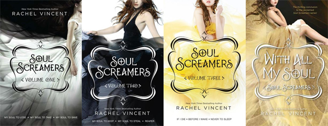 Pra completar, uma das séries mais lindas (na minha opinião), eu poderia ficar o dia todo observando essas capas. Adoro o contraste do branco e preto nas duas primeiras, mostram que não é necessário uma cor berrante pra chamar a atenção, mas a melhor é a última capa, de With All My Soul, pela pose da modelo. Mentira, não tenho como escolher uma predileta, são todas lindas demais.