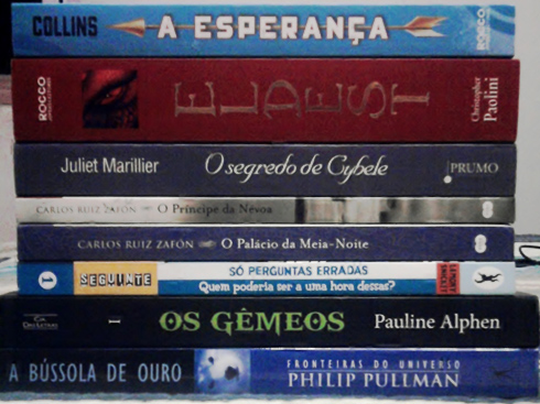 Juntei os livros de parceira que chegaram mais alguns que ganhei atrasado de aniversário, então vamos lá! Os Gêmeos (Pauline Alphen - Companhia das Letras) e O Segredo de Cybele (Juliet Marillier - Prumo), O Príncipe da Névoa e O Palácio da Meia Noite (Carlos Ruiz Zafón - Suma das Letras) são os de parceria. Li uma resenha elogiando Os Gêmeos e desde então fiquei curiosa, mas parece que a maioria que leu não gostou, então veremos. Estou muito ansiosa para começar O Segredo de Cybele, vocês não têm noção de como o final de A Dança da Floresta me deixou morrendo de vontade de lê-lo logo em seguida! O Príncipe da Névoa já foi resenhado pela Luh, mas eu vou fazer as próximas resenhas da trilogia então ela me enviou os livros *---*. Agora de presente ganhei A Bússola de Ouro (Philip Pullman - Objetiva) que até hoje me seguro para não ver o filme,Quem Poderia Ser a Uma Hora Dessas? (Lemony Snicket - Companhia das Letras) de um autor que eu amo e espero ler ainda nas férias e Eldest (Christopher Paolini - Rocco), o segundo da série Ciclo da Herança e quem leu a resenha de Eragon sabe o quanto quero devorar o livro! Por último A Esperança (Suzanne Collins - Rocco) que comprei recentemente para enfim completar minha trilogia de Jogos Vorazes <3