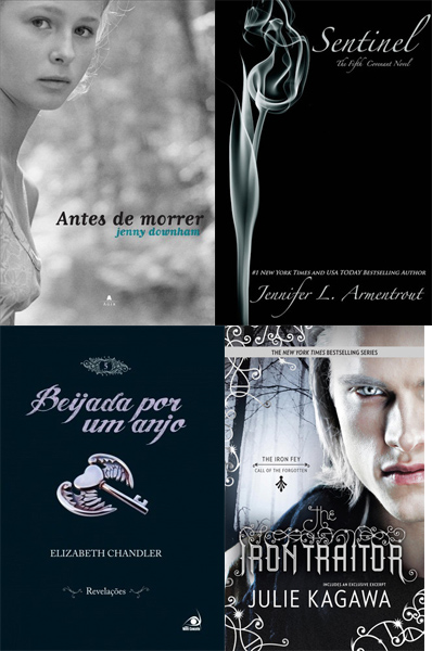 Antes de Morrer até que ficou boa, sinto que falta alguma coisa ali, mas não acho que sejam as cores e sim uns enfeites ou algo pra fazer a imagem chamar mais a atenção! Odiei Sentinel, serei sincera, as outras capas dessa série (como Half-Blood) são lindas justamente por terem cores fortes, e acho que estragaram isso no livro, parece que alguém fumou um cigarro. Revelações não ficou ruim, eu até que gostei, mas também sinto falta de uma corzinha. The Iron Traitor acabou sendo a mesma coisa. Eu não gostei do modelo, pra começar, mas ignorando isso, senti falta das cores belíssimas que vemos nas outras capas da série, como O Rei do Ferro.