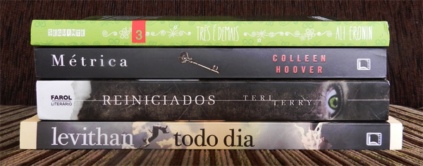 Depois, de parceria eu recebi Três É Demais (Ali Cronin - Companhia das Letras), que eu até já li. Essa série está longe de ser a minha predileta, mas é bem divertida. Por fim, passei na livraria, não resisti e comprei Reiniciados (Teri Terry - Farol), que está ganhando a enquete e provavelmente estará na minha próxima Pilha de Leitura. É uma distopia e parece ser ótima!