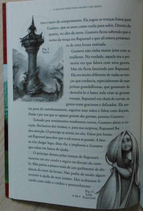Os Protagonistas: O autor conseguiu dar uma personalidade distinta a cada príncipe, após ler algumas páginas eu podia reconhecê-los apenas por suas ações. Primeiramente temos o refinado Príncipe Frederico, da lenda da Cinderela, um jovem magrelo que nunca se arriscou muito e tem medo de praticamente qualquer coisa, porém ele resolve se aventurar no mundo para ir atrás de sua amada Ella. Em seguida conhecemos Príncipe Gustavo, que na verdade foi salvo pela Rapunzel ao invés de resgatá-la, o mais novo de dezessete irmãos, um brutamontes enorme que tem a mania de agir sem pensar e vive tentando provar seu valor, porém conseguiu me conquistar e foi meu personagem predileto. Então é a vez do único dos quatro que se parece com o esteriótipo de príncipe, o corajoso Príncipe Liam, que resgata gatinhos de árvores e mata dragões, porém sua noiva Rosa, mais conhecida como Bela Adormecida, era o monstro mais assustador de todo o reino. Por fim, o pequeno Príncipe Duncan, o mais peculiar de todos, sempre acreditou ter uma sorte mágica e ela até que funcionou por um tempo, mas também colocou todos em algumas enrascadas. Cada um deles conseguiu me ganhar de uma maneira diferente, porém é quando os quatro estão juntos que o livro fica incrível.