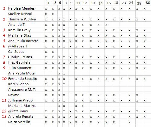 Foram 13 pessoas comentaram em todos os posts de dezembro (que não foram muitos). Como eu já tinha avisado, vocês podem esquecer de um comentário no mês e ainda participar. E os escolhidos foram...