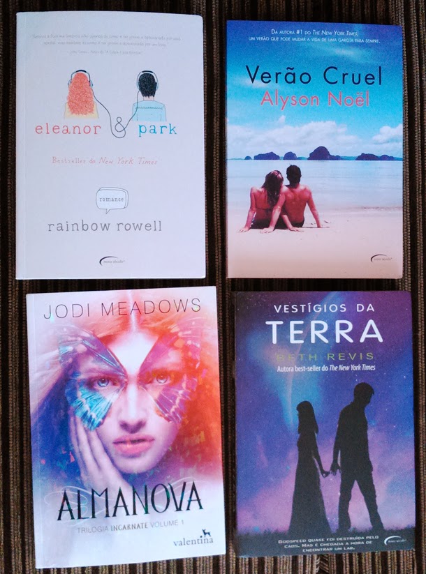 Yay, chegaram vários livros! Começando por um que eu queria muito, finalmente chegou meu Eleanor & Park (Rainbow Rowell - Novo Século), um romance que só recebe boas críticas. A editora também mandou Vestígios da Terra (Beth Revis - Novo Século), o último livro da trilogia Através do Universo, e Verão Cruel (Alyson Noel - Novo Século), que será resenhado pela May.