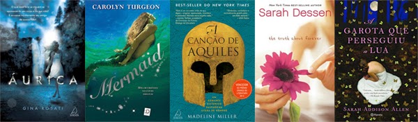 Agora que eu peguei uma quantidade enorme de continuações de séries, e como ainda não quero começar séries novas, escolhi livros únicos, que não fazem parte de série alguma. Áurica é uma fantasia paranormal sobre uma garota que consegue sair de seu corpo e acaba tendo o corpo possuído por outra pessoa, Mermaid é uma releitura de A Pequena Seria e A Canção de Aquiles, uma ficção histórica com mitologia, ganhou diversos prêmios internacionais. Por fim, de autoras já famosas, temos The Truth About Forever, um YA contemporâneo, e A Garota Que Perseguiu a Lua, que eu nem sei classificar direito, só sei que todos dizem que é maravilhoso.