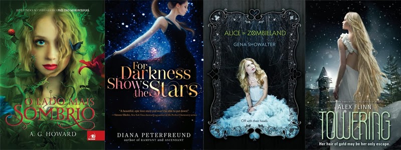 Por fim, algumas capas tão realistas que poderiam ser cinematográficas! O Lado Mais Sombrio transmite toda a loucura de Alice no País das Maravilhas, com diversos animais e elementos pela imagem. For Darkness Shows the Stars é uma capa que eu considero "propaganda enganosa", por não ter absolutamente nada com o céu ou estrelas, porém não deixa de ser uma imagem maravilhosa. Alice in Zombieland talvez não passe a sensação sombria que deveria, mas eu amei a modelo (e seu vestido), e a capa foi muito bem editada. Towering ficou por último, mas é uma das mais belas capas, adorei a torre que pode ser vista ao fundo.