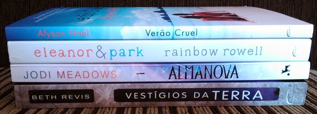 Yay, chegaram vários livros! Começando por um que eu queria muito, finalmente chegou meu Eleanor & Park (Rainbow Rowell - Novo Século), um romance que só recebe boas críticas. A editora também mandou Vestígios da Terra (Beth Revis - Novo Século), o último livro da trilogia Através do Universo, e Verão Cruel (Alyson Noel - Novo Século), que será resenhado pela May.