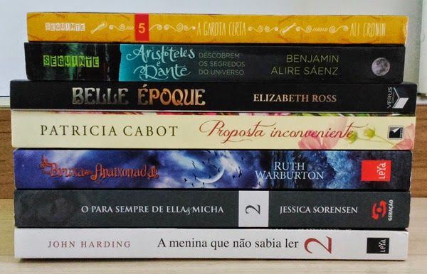 Dois livros chegaram para a Tay e é ela quem vai resenhar, Proposta Inconveniente (Patricia Cabot - Record), que é um romance com piratas, e A Menina Que Não Sabia Ler 2 (John Harding - Leya), a continuação de um livro muito conhecido. Outro livro que não poderei ler por um tempo é O Para Sempre de Ella e Micha (Jesica Sorensen - Geração), que está com uma capa linda, porém é o segundo livro de uma série que ainda não comecei.