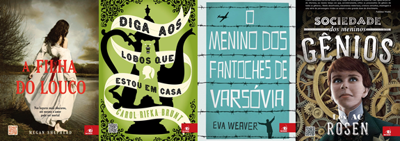 Eu falei que preciso desencalhar os livros de parceria da Novo Conceito, né? Então que tal vocês me ajudarem a escolher mais um? Esses são os outros quatro livros da editora que estão aqui, e estou curiosa para ler todos. A Filha do Louco, sobre uma menina que quer descobrir se as acusações de seu pai ser um cientista louco são realmente verdadeiras. Diga aos Lobos Que Estou em Casa é um drama que parece muuuito bom. O Menino dos Fantoches de Varsóvia se passa na Segunda Guerra Mundial e parece ser meio como os livros do John Boyne. E Sociedade dos Meninos Gênios, que é um steampunk. Dependendo, posso até escolher os dois livros mais votados, daí já adianta um pouco mais minha vida, haha. Escolham bem :D