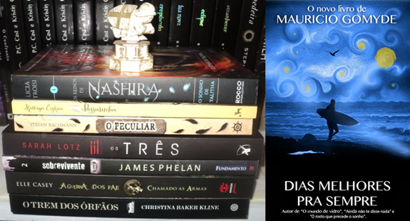 Eu comecei com O Sonho de Talitha, que foi uma leitura legal, mas várias coisas me incomodaram, mesmo assim quero ler a continuação :). Os Três me decepcionou, porque fui com altas expectativas em relação ao livro e no final a leitura foi bem "nhem". Sobrevivente foi melhor que o primeiro volume, teve mais ação e me deixou curiosa para descobrir como todo aquele desastre e o vírus dos Caçadores começaram. Passarinha é um livro tocante e fofo, que fala sobre autismo, e eu adorei muito a leitura. Chamados às Armas foi um livro muito bom, mas o primeiro foi melhor, principalmente em questões de ação, aventura e as piadas e palhaçadas da Jayne. O Peculiar é um livro como seu próprio título diz - peculiar -, mas não deixa de ser uma história envolvente, com aventuras e um mundo mágico bem legal. Dias Melhores Pra Sempre é de autoria nacional e eu li em ebook; gostei bastante do livro, é um romance - como todos desse autor -, mas ainda prefiro o outro que li dele - O Rosto Que Precede o Sonho. Por último, eu li O Trem dos Órfãos, que eu gostei bastante e recomendo para todos!