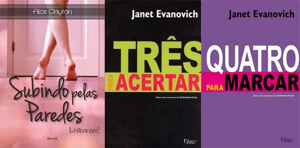 Aquela faixa levemente transparente em volta do nome da autora de Subindo Pelas Paredes e a sombra no título me deram muito a impressão de uma capa amadora, infelizmente. Nem sei o que dizer sobre a série Stephanie Plum, a editora nem se deu ao trabalho de tentar fazer um fundo (provavelmente porque a série é enorme).