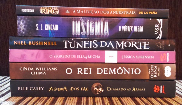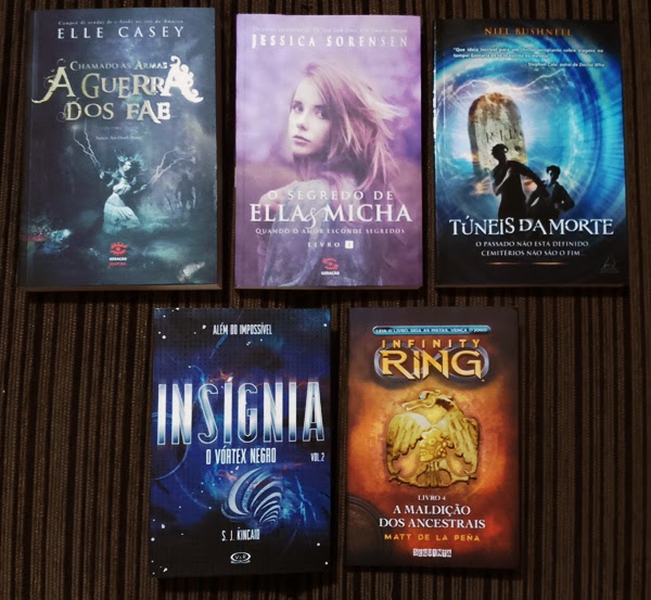 Essa semana recebi um pacote com Chamado às Armas (Elle Casey - Geração), que será sorteado porque já resenhamos outro exemplar, e O Segredo de Ella & Micha (Jessica Sorensen - Geração), que espero amar, porque já tenho a continuação aqui me esperando! Depois chegou um infanto-juvenil de ficção científica, Túneis da Morte (Neil Bushnell - Pensamento), que vai para a Tay.