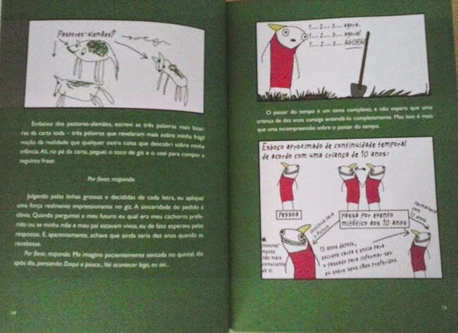 Hyperbole and a Half é um livro todo ilustrado no paint, pela própria autora, sobre coisas que aconteceram com ela quando mais nova. As ilustrações são super divertidas e coloridas, mas o livro não é infantil.