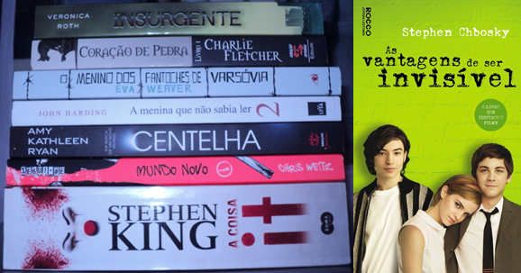 Como tem alguns livros pra chegar, inclusive alguns que estou bem ansiosa para ler, essa pilha pode sofrer alterações (não tem jeito, sempre acontece). Como não deu pra ler Insurgente (vencedor da outra votação), vou continuar adicionando ele às pilhas até conseguir ler, haha. Coração de Pedra dá início a uma trilogia sobre guerra entre estátuas (isso parece ser tão legal! *--*). O Menino dos Fantoches de Varsóvia se passa no período da Segunda Guerra Mundial e estou bem ansiosa para lê-lo. Acho que A Menina que Não Sabia Ler 2 vai trazer uma história completamente diferente do primeiro livro, apesar de ser a mesma protagonista, e estou curiosa a respeito, porque nunca iria imaginar que teria continuação. Centelha é a continuação de Brilho, uma distopia que se passa no espaço e que eu gostei bastante. Mundo Novo é outra distopia, e esse livro tem gerado polêmica, já que muitas pessoas estão dizendo que a trama é idêntica a de uma série dos anos 90, chamada The Tribes. A Coisa é gigantesco! Eu com certeza vou demorar bastante tempo para vencer suas 1104 páginas, então ele provavelmente vai aparecer em outras pilhas. E por fim, As Vantagens de Ser Invisível, que ficou empatado com outro livro na votação, então eu acabei optando por ele.