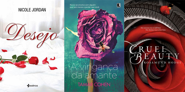 Não gostei muito dessa imagem de Desejo porque me parece propaganda de alguma coisa e porque ficou muito amadora, principalmente o título. Mas adorei a capa de A Vingança da Amante por causa das cores, o contraste entre a flor e o fundo ficou maravilhoso! Eu já mostrei Cruel Beauty antes, mas amo a ideia de mesclar a escada e a rosa, ficou lindo e original, só acho que poderiam ter usado um pouquinho mais de cor.
