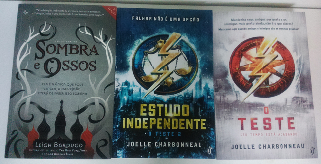 Essa semana podem ter chego poucos livros, mas eram livros que eu queria muito. Primeiro, parte de uma série que eu já comecei, O Teste) e Estudo Independente (Joelle Charbonneau - Única), compõem uma trilogia distópica que estou amando. E, um dos livros que mais ter, Sombra e Ossos (Leigh Bardugo - Gutenberg) é uma fantasia que recebeu críticas maravilhosas.