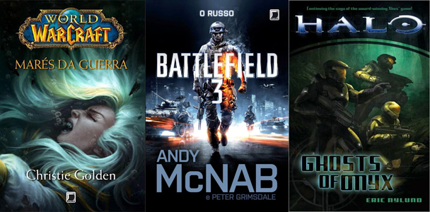 Marés da Guerra já é o volume 11 de Warcraft, eu adorei a capa, o cabelo parece ter vida e personalidade própria, faz sentido na verdada, ela é uma feiticeira...além disso dá quase para sentir aquela agonia de quando o ar se esvai e o pulmão começa a queimar (e sim eu sei disso porque já participei de muitas competições infantis de "Quem consegue ficar d'agua por mais tempo"). As capas de Battlefield e Halo não tem muita criatividade, mas os jogos também não tem, a jogabilidade é boa mas depois que você já viu um...Vamos concordar que Ghosts of Onyx também está mal feita, O Russo pelo menos tem um efeito de coloração muito bom.
