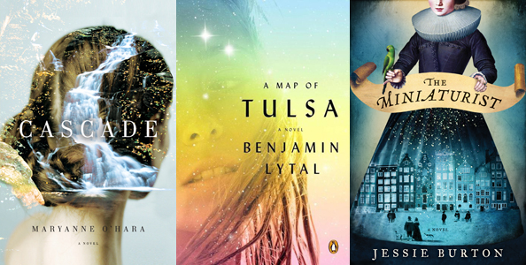 Cascade está no mesmo patamar que The Sadinians, que tem a trama passada na pequena cidade fictícia de Cascade - cascasta - que enfrenta uma crise quando o estado decide fazer um reservatório de água, mas para isso precisa afogar algumas cidades, sendo Cascade sua primeira opção. A imagem da modelo e da paisagem natural se misturam, sendo que a cascata acompanha a silhueta do cabelo da modelo, é tão delicado e expressivo. Apesar de gostar da capa de A map of Tulsa as cores me lembraram muito a bandeira arco-íris, que apesar de ser mais conhecida pelo movimento LGBT foi usada em primeiro lugar como símbolo para revoluções pacifistas, não li o livro mas pelo sinopse não parece tratar nenhum dos casos, e me causa um certo incômodo por que te remete a isso, é um símbolo forte por assim dizer usado sem significado, mas isso pode ser só eu sendo...bom eu. The Miniaturist pode ser a minha preferida, e o que mais tive vontade de ler, tão detalhada com um fundo em sombreado colorido muito bonito, parecendo uma pintura, o retrato da sociedade de Amsterdã perfeito, pronto para se mover com apenas um piscar de olhos, todo desenhado na saia de Nella, que usa trajes tradicionais a época, além dos detalhes estarem de acordo com o próprio título da obra.