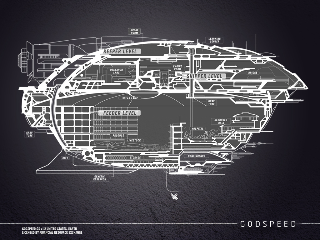 Isso teria me ajudado bastante se eu tivesse descoberto o mapa durante a leitura, porém ele só estava disponível no hardcover americano e no site da autora. A nave espacial onde os protagonistas vivem é um pouco complexa, porém muito interessante.
