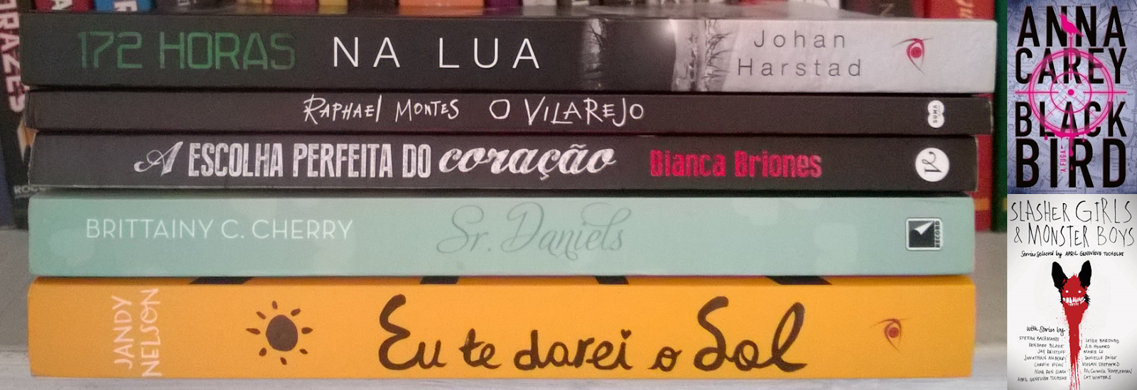 Li durante o mês de outubro o Slasher Girls & Monster Boys, um livro com 14 contos de horror YA. Gostei de vários contos, mas outros foram um pouco decepcionantes. 172 Horas Na Lua é um suspense que se passa no espaço e eu adorei, o final me deixou de boca aberta. O Vilarejo não me impressionou tanto, apesar de eu ter gostado dos contos, mas acho que o autor poderia ter trabalhado um pouco melhor nas histórias. A Escolha Perfeita do Coração é um livro extra da série Batidas Perdidas, começando exatamente onde terminou o primeiro livro. Gostei bastante e foi uma leitura boa para me apegar novamente à Vivi e ao Rafa. Sr. Daniels foi uma leitura muito boa, e gostei principalmente do livro não se focar apenas no romance. Eu Te Darei o Sol ganhou um espaço especial no meu coração, porque eu fiquei completamente apaixonada por esse livro. Blackbird: A Fuga é um thriller YA que me deixou bem empolgada e curiosa para descobrir o que está acontecendo. Fiquei com muita vontade de ler a sequência logo.