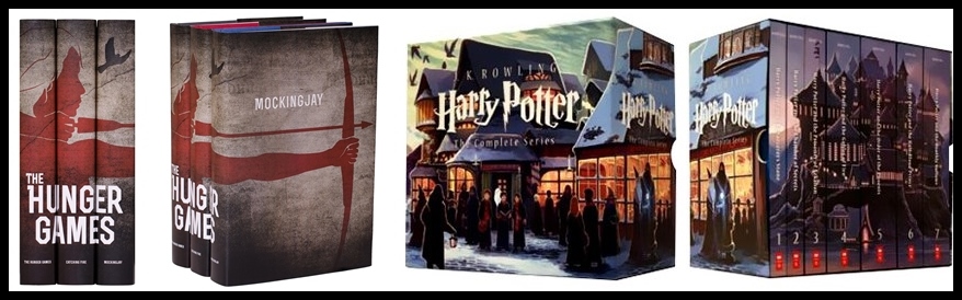 Gostei muito de uma das edições americanas de Jogos Vorazes - há muitas sendo laçadas ultimamente - a jacket forma Katniss com um tordo ao fundo mirando com seu arco-e-flecha. A nova edição brasileira - já um pouco defasada nos EUA - de Harry Potter é meu novo sonho de consumo...imagina esse box na sua estante..só imagina!