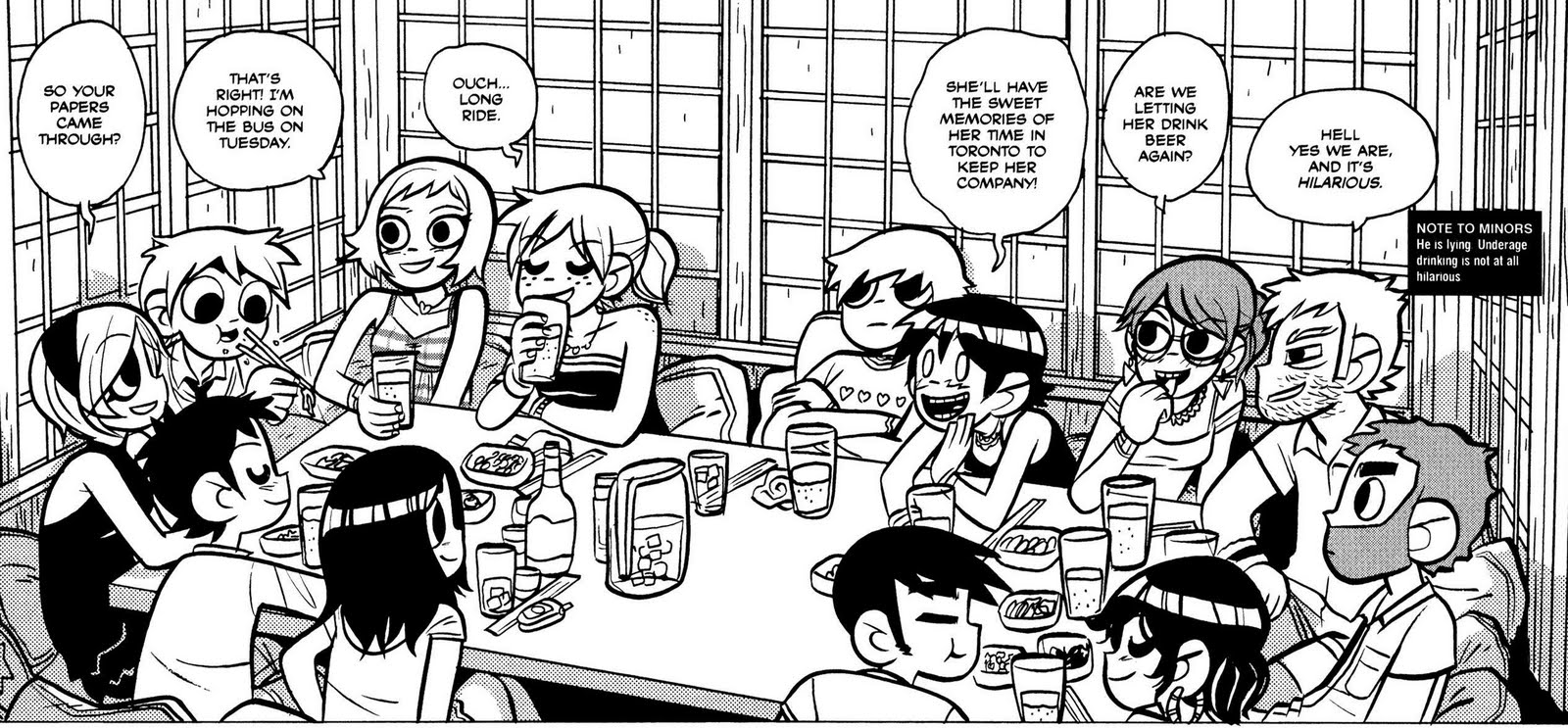 Os Personagens Secundários: Ainda repleta de personagens secundários, somos apresentados a novos elementos - Envy, a ex namorada de Scott é arrogante, quase insensível e praticamente insuportável. Todd consegue se mostrar ainda mais desprezível que a namorada. São introduzidos dois personagens misteriosos que provavelmente serão mais explorados no próximo volume - Um asiático ferino que porta uma Katana e um homem de óculos que aparece em vários lugares, inclusive nos sonhos de Ramona. Knives mostra um amadurecimento enorme, estou começando a gostar dela.