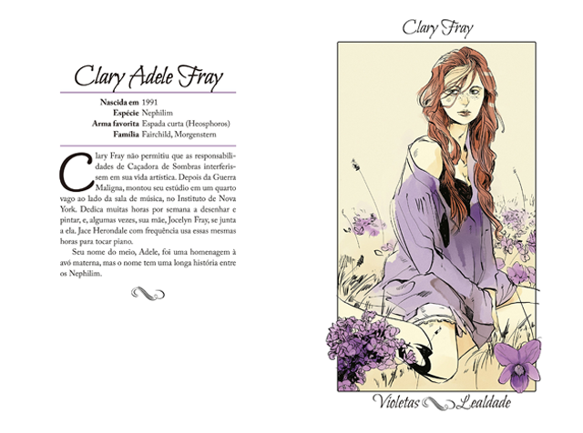 Capa, ilustrações e Escrita: A capa é muito simples, parece as encadernações antigas de fichas e trabalhos encontrados em bibliotecas, ou que se possa esperar de documentos antigos. Mesmo que seja diferente em alguns parâmetros das minhas ideias para os personagens, é maravilhoso saber com exatidão como são os personagens com o aval da autora. Os "detalhisinhos" deixados por Cassandra nas fichas são adoráveis e ajudam a relembrar das personagens! Para não dizer que é realmente perfeito, o fundo branco das páginas me deu um pouco de dor de cabeça (mas isso é frescura - falta de costume -, mesmo porque as ilustrações ficam mais bonitas no fundo branco).