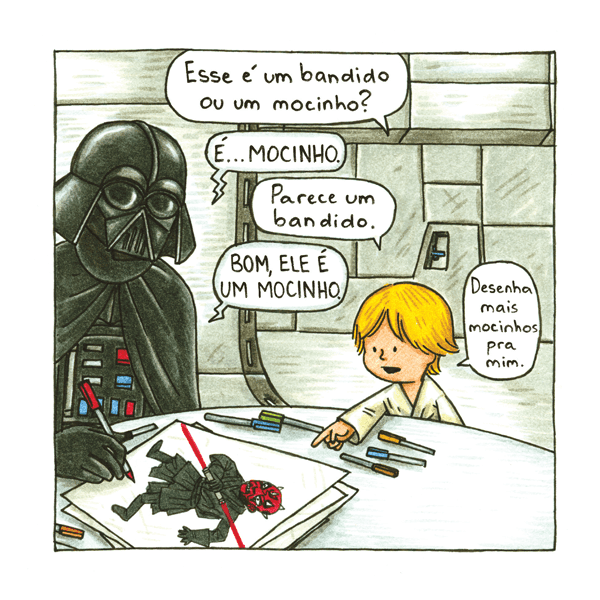 Os Personagens: O que torna esse livro tão cativante, é a dinâmica pai-e-filho aplicada ao universo de Star Wars e amplificada pela ironia de um par tão improvável. A paternidade despreocupada já seria muito divertida nessa situação - passeios, a rotina do dia-a-dia, "birra" infantil, a paciência entre outras coisas - focada em Darth Vader, como um pai solteiro carinhoso é um misto de divertimento e fofura.