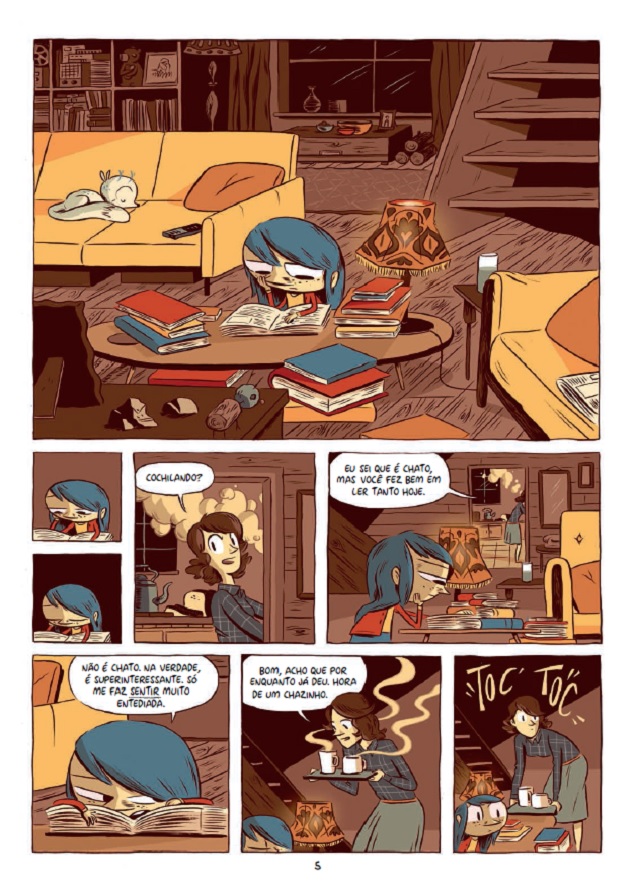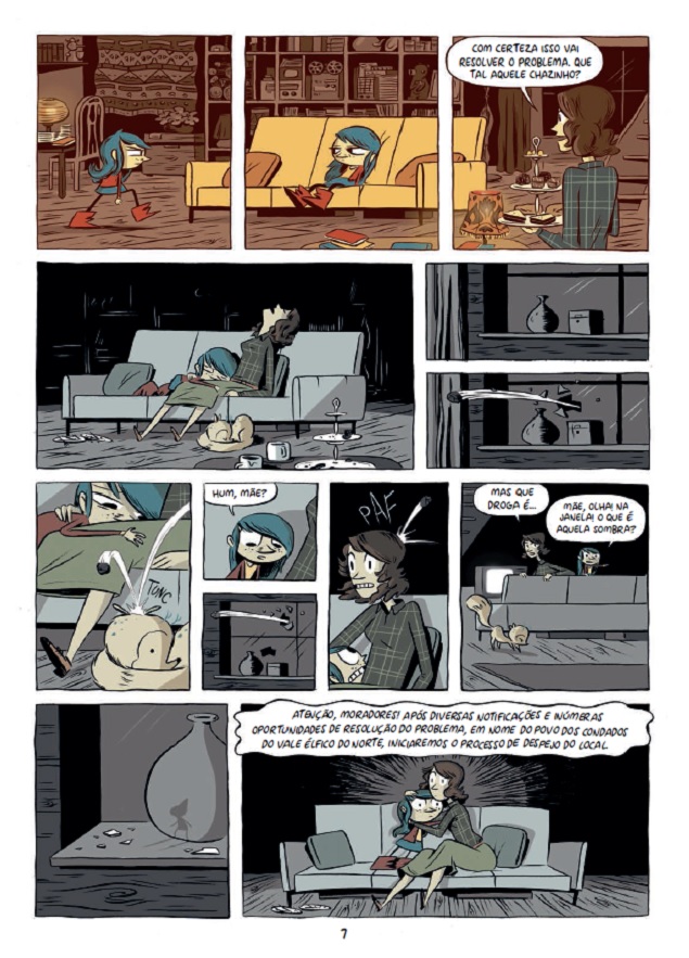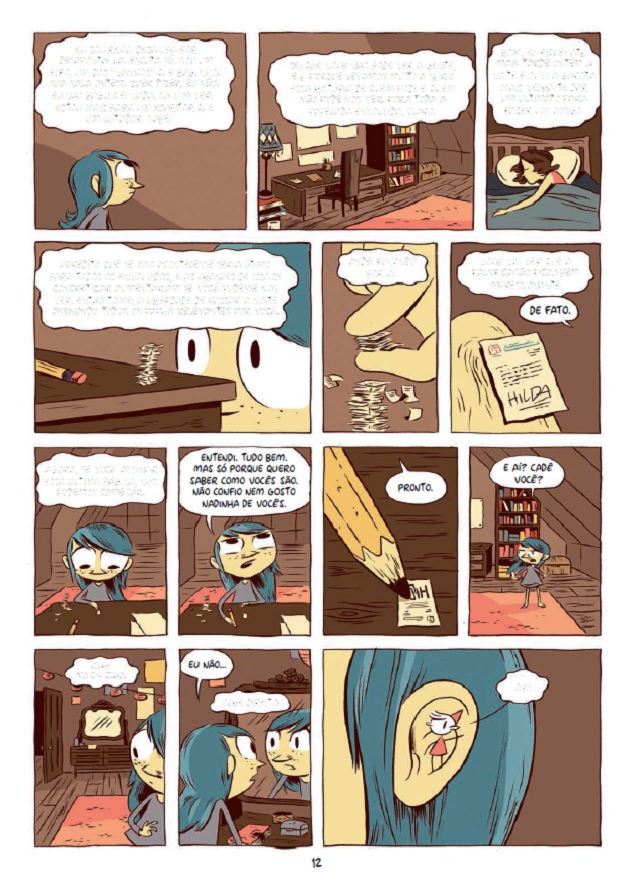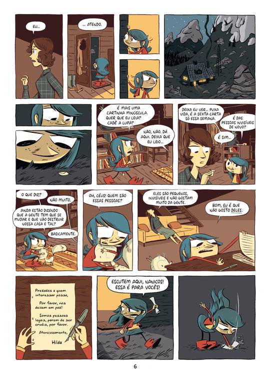 Trama: Os dias tranquilos de Hilda e sua mãe mudam quando elas começam a receber minúsculas notificações para deixar a casa e o vale em que vivem. Por conveniência, e dada a excentricidade da situação, mãe e filha preferem ignorar o ocorrido, até que um dia são atacadas por seres diminutos - estes elfos invisíveis que moram no mesmo vale que Hilda e a muito mais tempo. Me assustei com algumas mudanças na formatação geral da HQ, embora a história continue encantadora.
